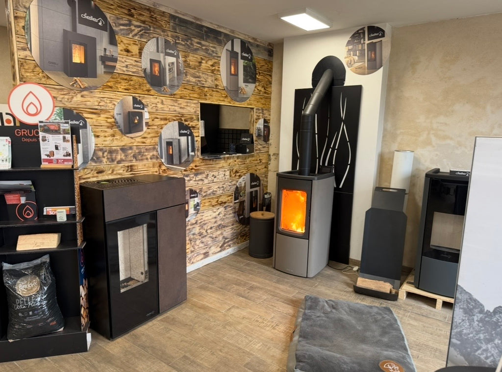 Comme vous pouvez le voir sur notre façade, notre magasin vous ouvre ses portes avec une large exposition de poêles à bois et à granulés.